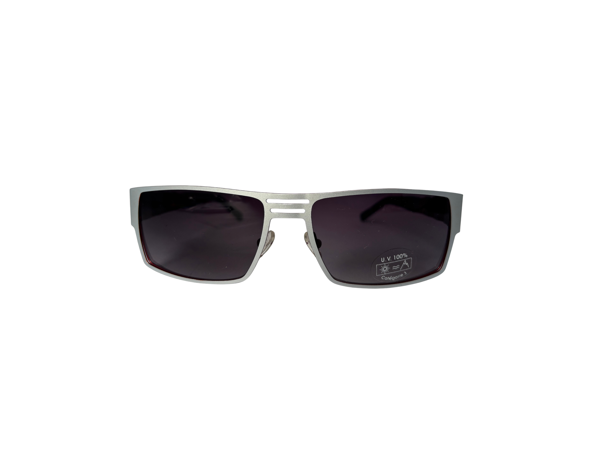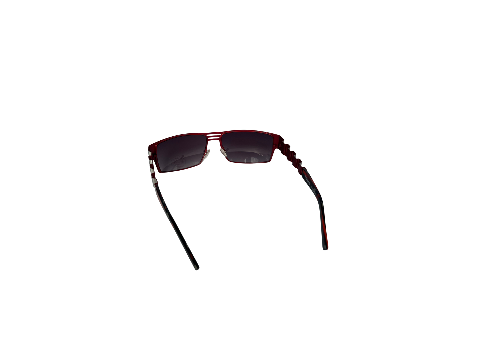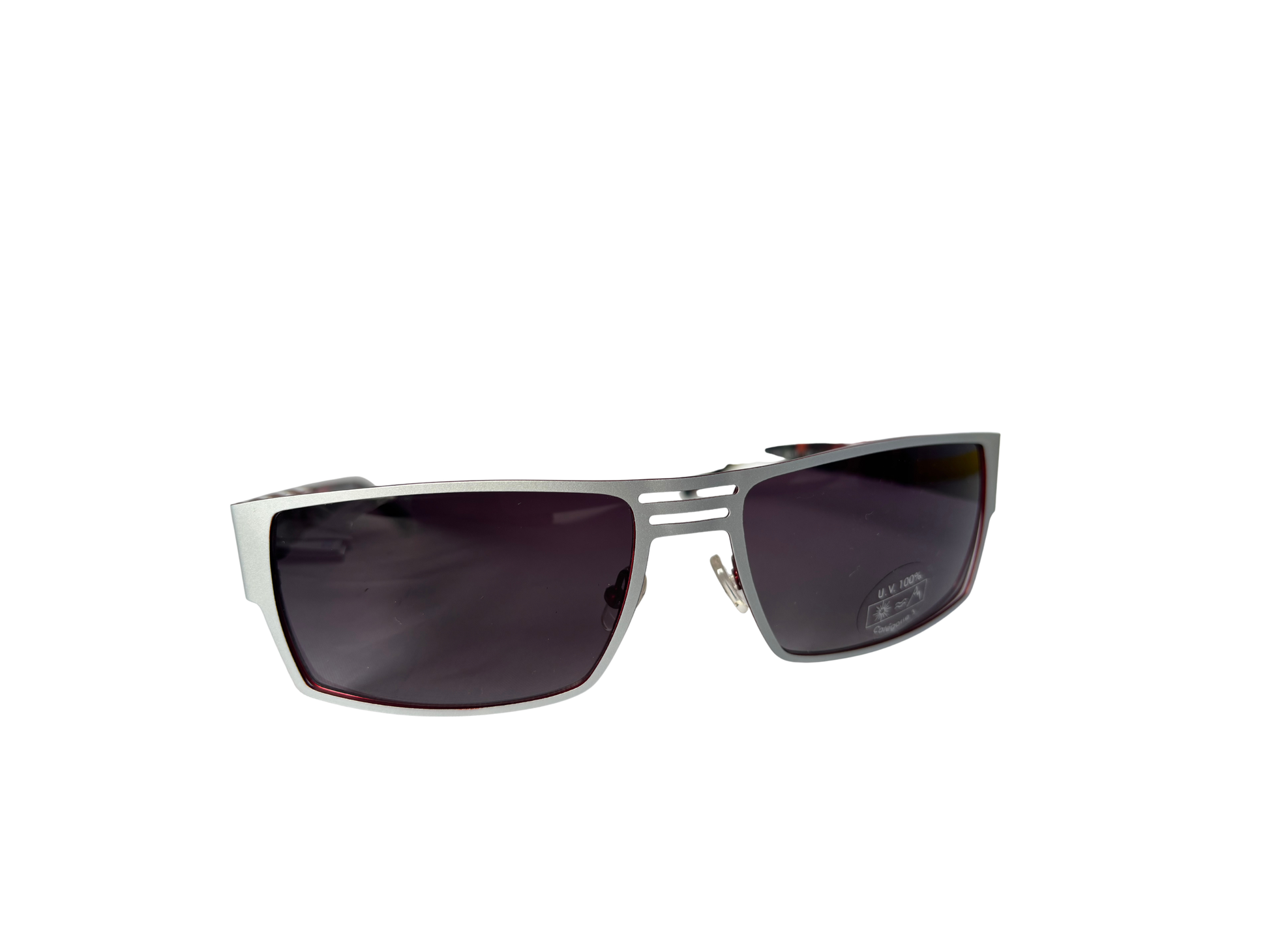 Renoma sunglasses with a sculptural design typical of the 90s. A bold angular line, textured temples with a deep red/tortoiseshell contrast: a striking, graphic piece, conceived as a fashion accessory in its own right. Lightweight construction despite its size, very comfortable to wear.
